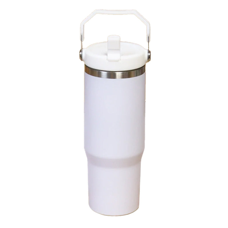 The Sublimation Tumbler with Handle is a game-changer for drink enthusiasts. It features a sturdy stainless steel handle, making it easy to carry around. Moreover, the screw-on straw lid ensures your drink stays secure, so no more accidental spills. With its sleek matte white finish, this tumbler is not just practical but also stylish. Additionally, you can customize it with your favorite designs, making it uniquely yours. This tumbler is a must-have for anyone who loves their drinks on the go.